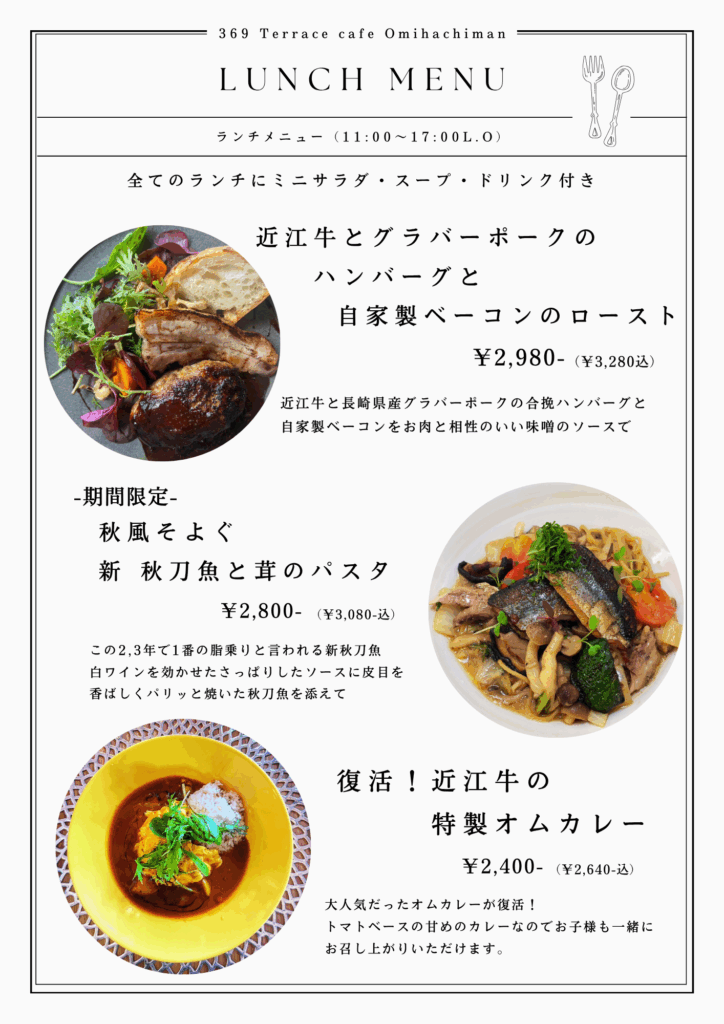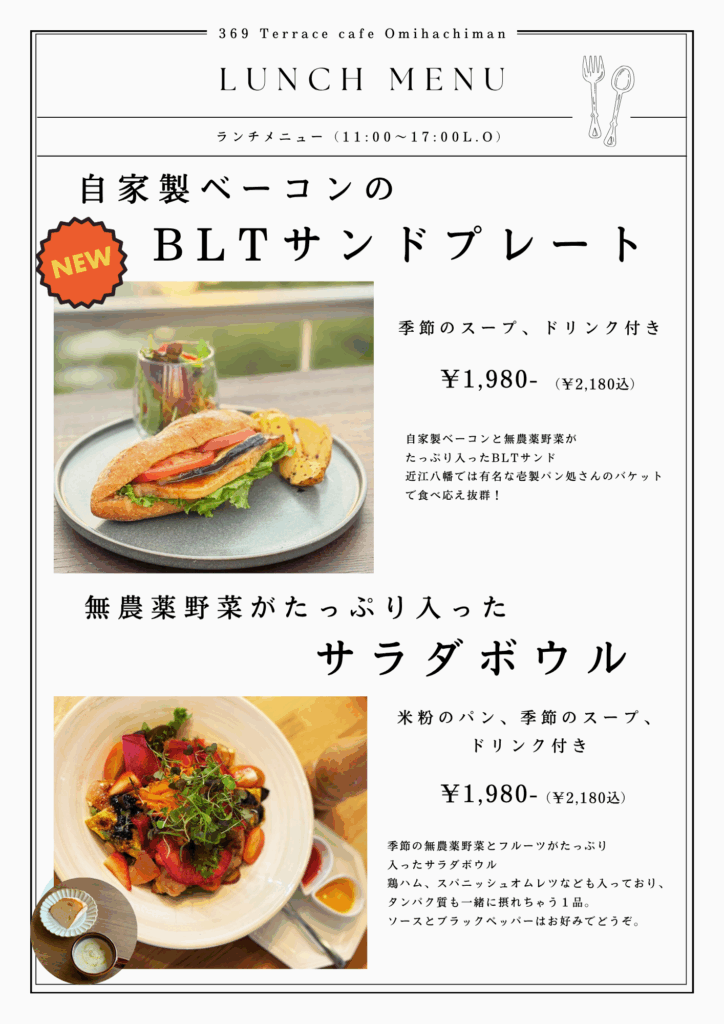 369Terraceでは、私の生まれ育った地元滋賀県の食材や、無添加無農薬のお野菜をふんだんに使用した